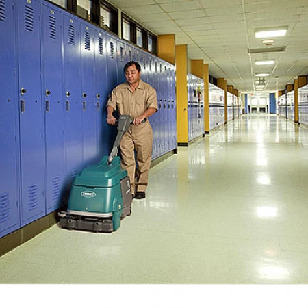 Cambie la fregona y el cubo por la fregadora a batería T1 de Tennant para obtener una potente limpieza en espacios reducidos. Friegue los suelos varias veces al día gracias a la batería opcional de ion litio.