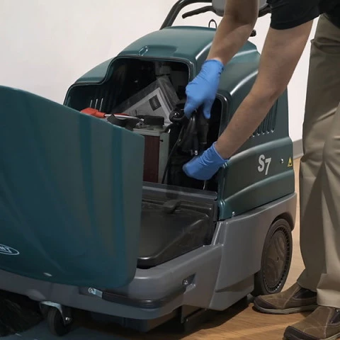 Al incorporar funciones diseñadas para maximizar la productividad y lograr resultados de alto rendimiento, la fregadora industrial de conductor sentado T20 de Tennant ofrece limpieza de excelencia en entornos industriales.